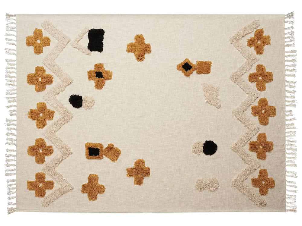 Blanket Beige and Yellow Cotton 130 x 180 cm Bed Throw Abstract Pattern Fringes Bedroom Living Room Beliani is backordered and will ship as soon as it is back in stock.