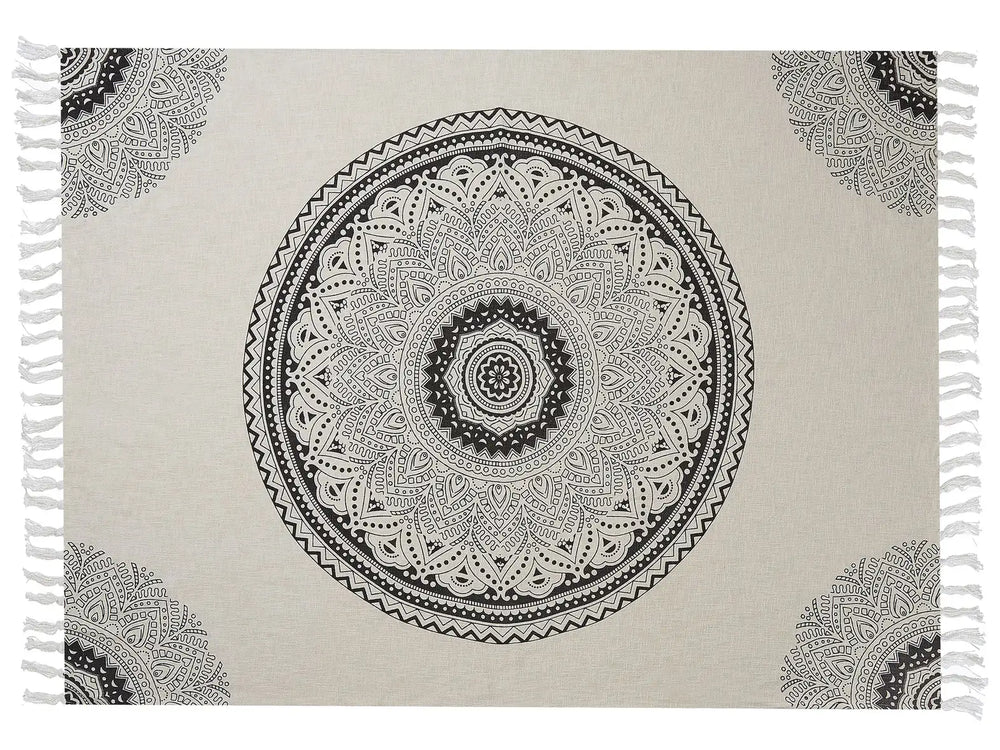 Blanket Beige and Black Cotton 130 x 180 cm Print Mandala Pattern Bed Throw Cosy Floral Pattern Beliani
