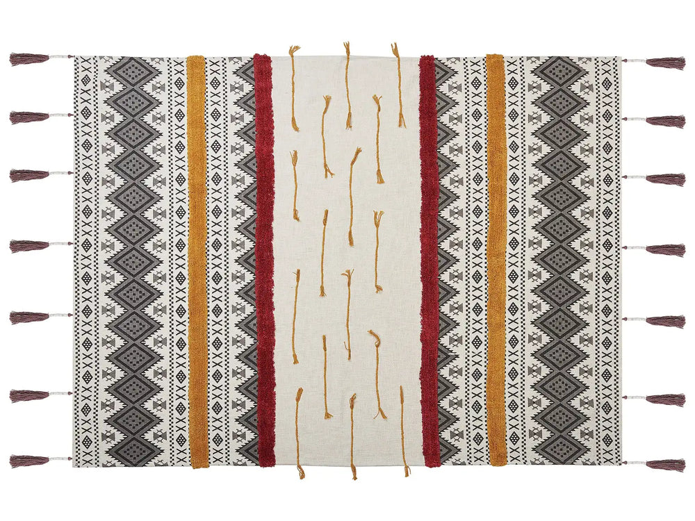 Blanket Multicolour Cotton 130 x 180 cm Tribal Pattern Print Bed Throw Cosy Accessory Beliani