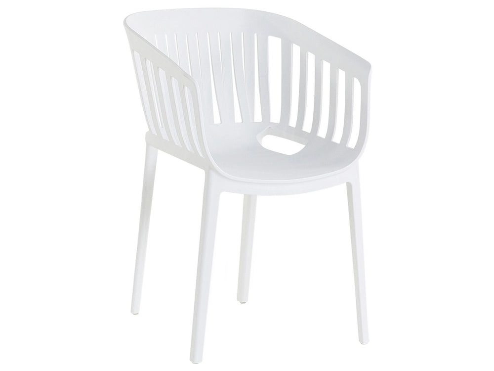 Dining Chair White Indoor Outdoor Stackable Curved Slatted Back Beliani