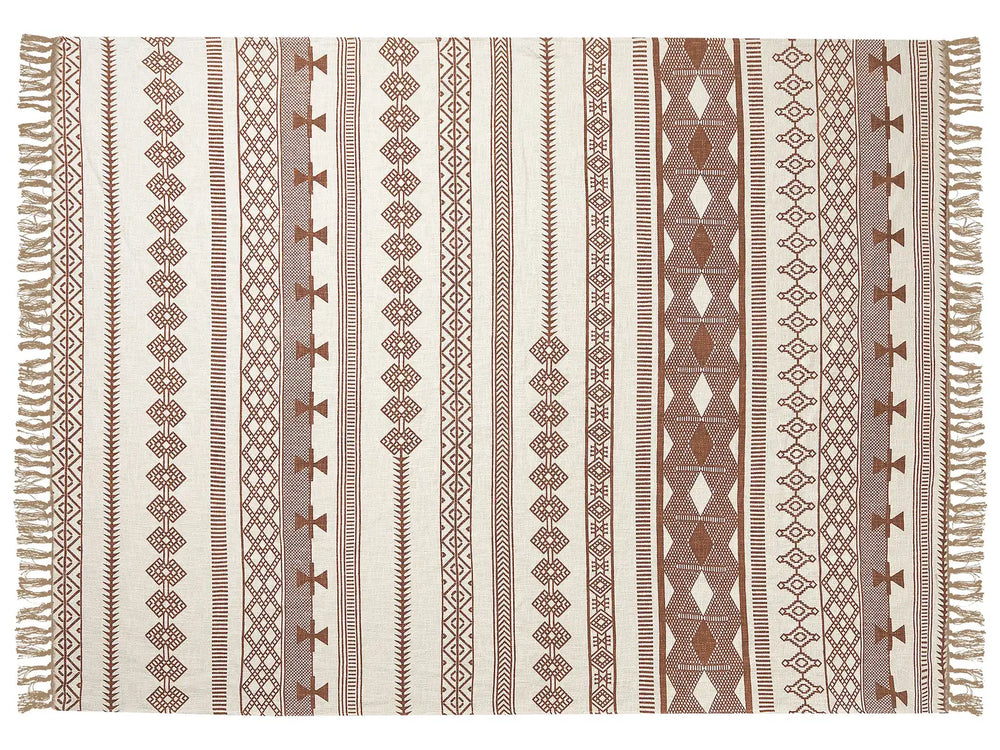 Cotton Blanket Beige Brown 130 x 180 cm Bed Throw African Kilim Pattern Etnic Design Beliani