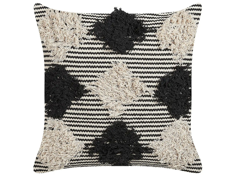 Scatter Cushion Beige and Black Cotton 50 x 50 cm Geometric Pattern Handwoven Removable Cover with Filling Beliani