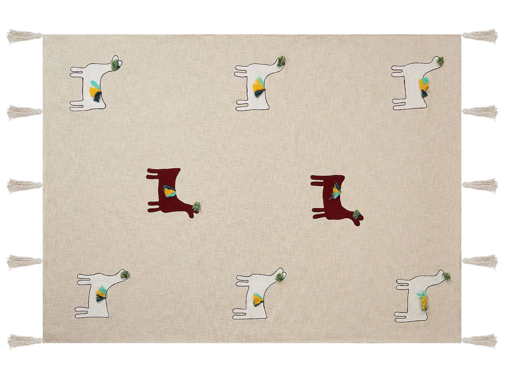Blanket Beige and Brown Cotton 130 x 180 cm Handmade Embrioidery Bed Throw Cosy Lama Pattern with Tassels Beliani is backordered and will ship as soon as it is back in stock.