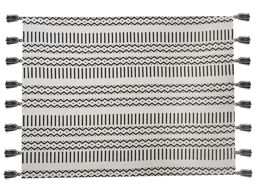 Blanket Black and White Cotton 130 x 180 cm Bed Throw African Tribal Print Beliani