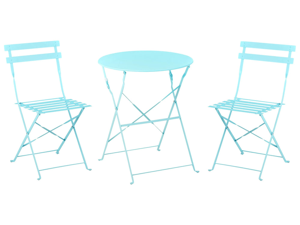 3 Piece Bistro Set Blue Metal Folding Slatted Seat Back Outdoor Beliani