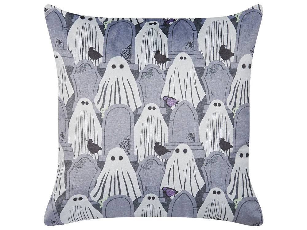 Decorative Cushion Grey Velvet 45 x 45 cm Ghost Pattern Square Modern Halloween Autumn Decor Accessories Beliani