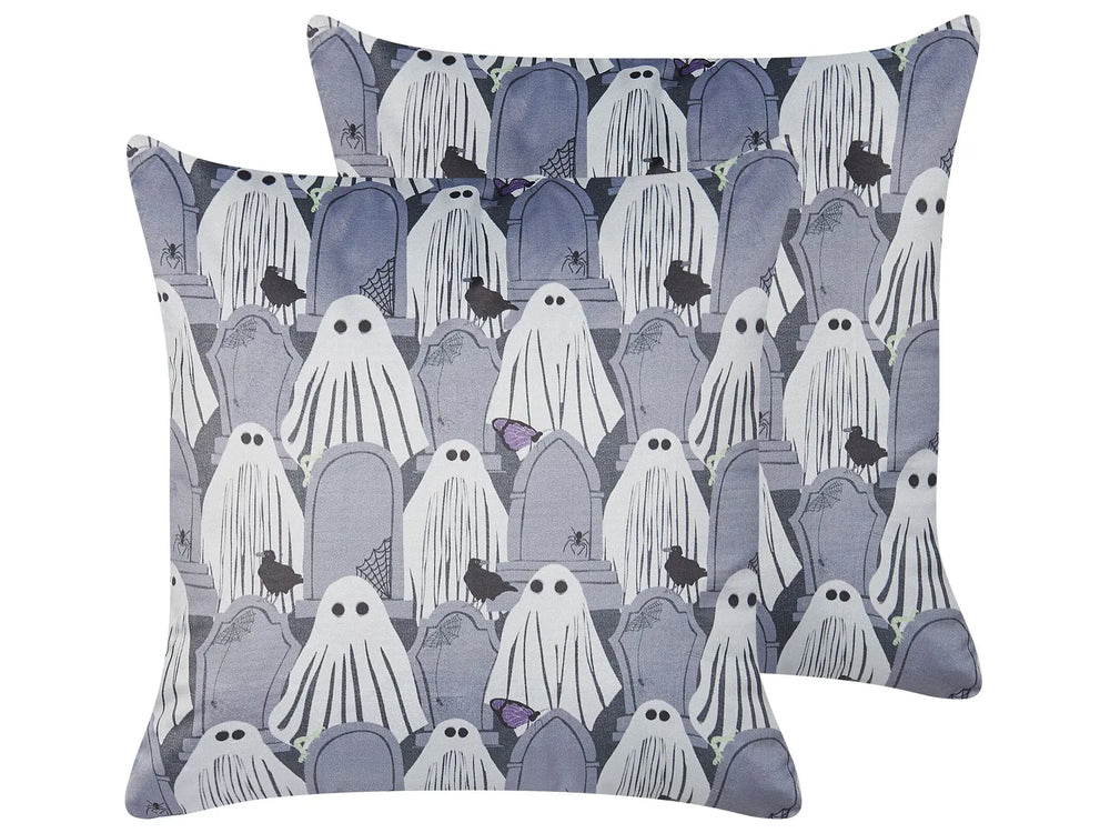 Set of 2 Decorative Cushions Grey Velvet 45 x 45 cm Ghost Pattern Square Modern Halloween Autumn Decor Accessories Beliani