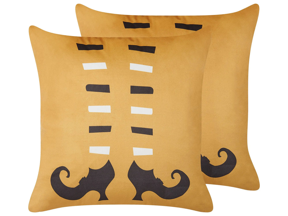 Set of 2 Decorative Cushions Orange Velvet 45 x 45 cm Witch Shoes Pattern Square Modern Halloween Autumn Decor Accessories Beliani