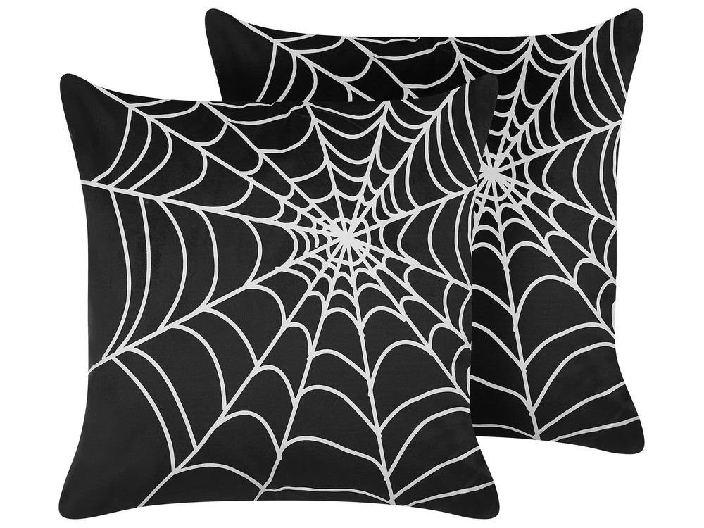 Set of 2 Decorative Cushions Black Velvet 45 x 45 cm Spider Web Pattern Square Modern Halloween Autumn Decor Accessories Beliani is backordered and will ship as soon as it is back in stock.