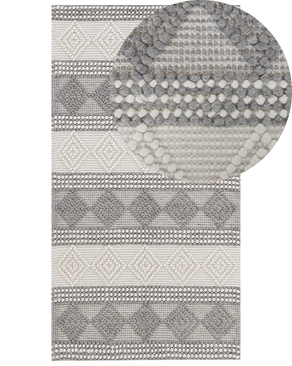 Area Rug Light Beige and Grey Wool Polyester 80 x 150 cm Hand Woven Geometric Pattern Boho Living Room Bedroom Beliani is backordered and will ship as soon as it is back in stock.