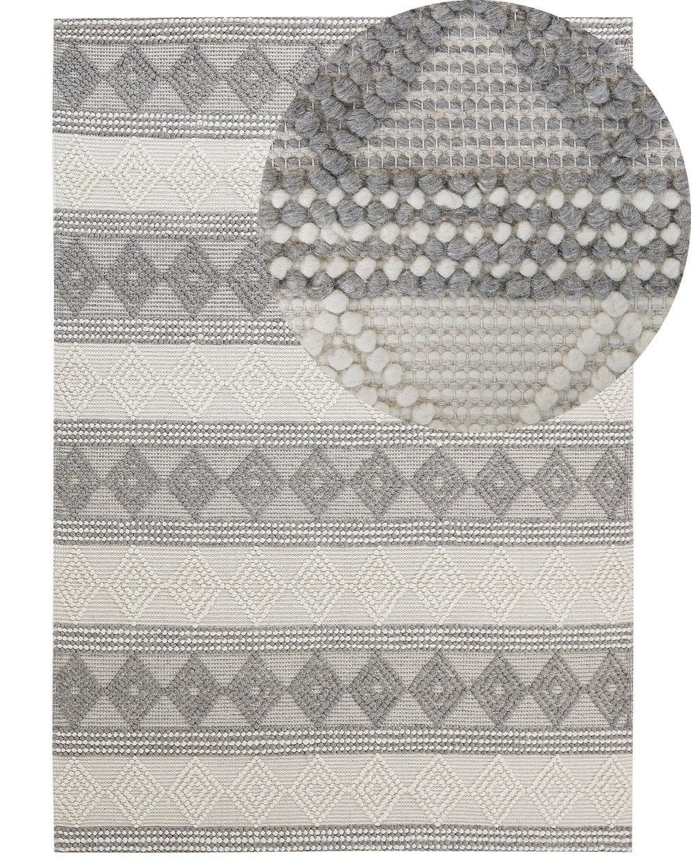 Area Rug Light Beige and Grey Wool Polyester 160 x 230 cm Hand Woven Geometric Pattern Boho Living Room Bedroom Beliani is backordered and will ship as soon as it is back in stock.