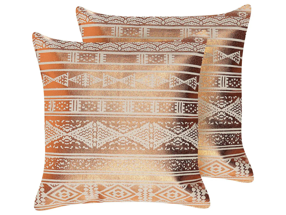 Set of 2 Decorative Cushions Copper Cotton 50 x 50 cm Geometric Pattern Foil Print Glamour Decor Accessories Beliani