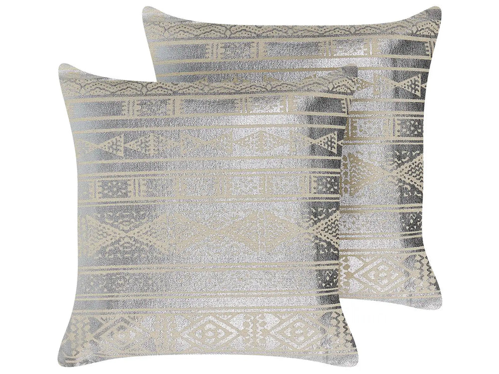Set of 2 Decorative Cushions Silver Cotton 50 x 50 cm Geometric Pattern Foil Print Glamour Decor Accessories Beliani