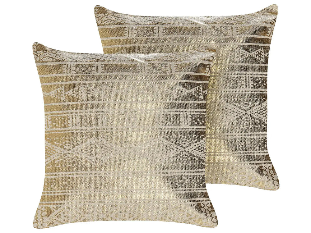 Set of 2 Decorative Cushions Gold Cotton 50 x 50 cm Geometric Pattern Foil Print Glamour Decor Accessories Beliani