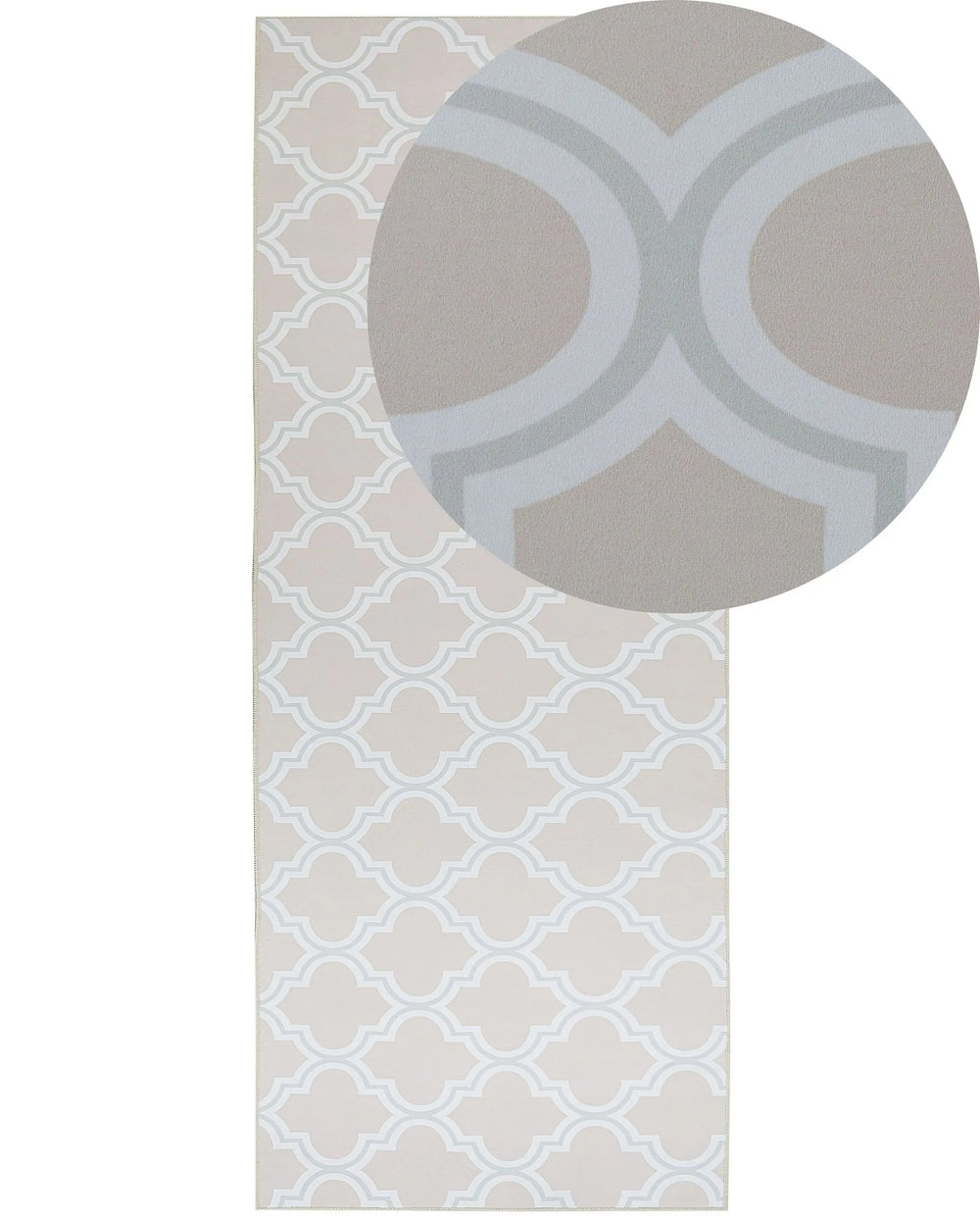 Runner Rug Runner Beige Polyester 80 x 200 cm Oriental Quatrefoil Pattern Living Room Bedroom Decorations Beliani