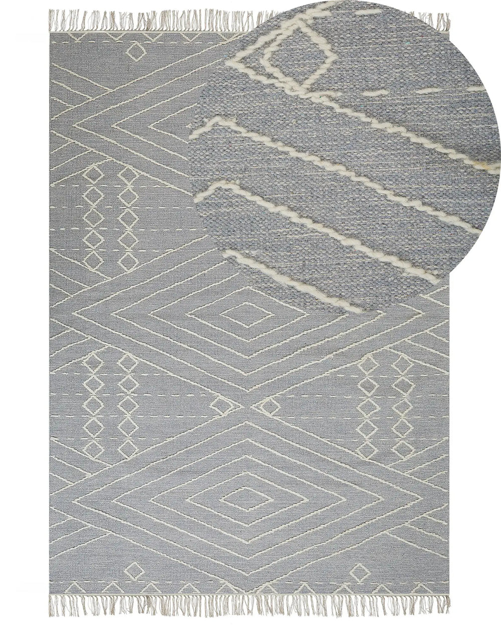 Rug Off-White Grey Cotton Wool 160 x 230 cm Geometric Pattern Runes Tribal Tassels Oriental Beliani