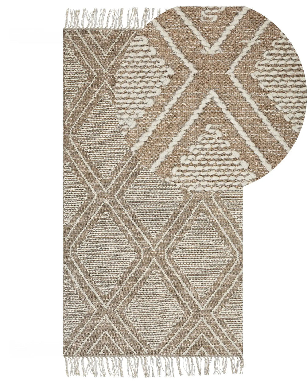 Rug Off-White Beige Cotton Wool 80 x 150 cm Geometric Pattern Runes Tribal Tassels Oriental Beliani