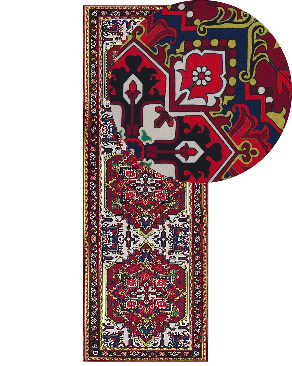 Area Rug Red Polyester 70 x 200 cm Runner Oriental Vintage Living Room Bedroom Hallway Beliani