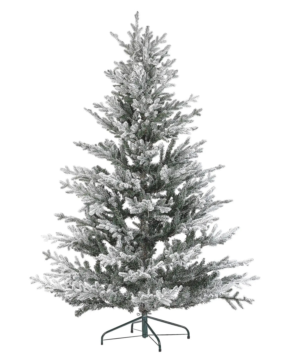 Artificial Christmas Tree White Synthetic 180 cm Snow Frosted Flocked Hinged Branches Holiday Beliani