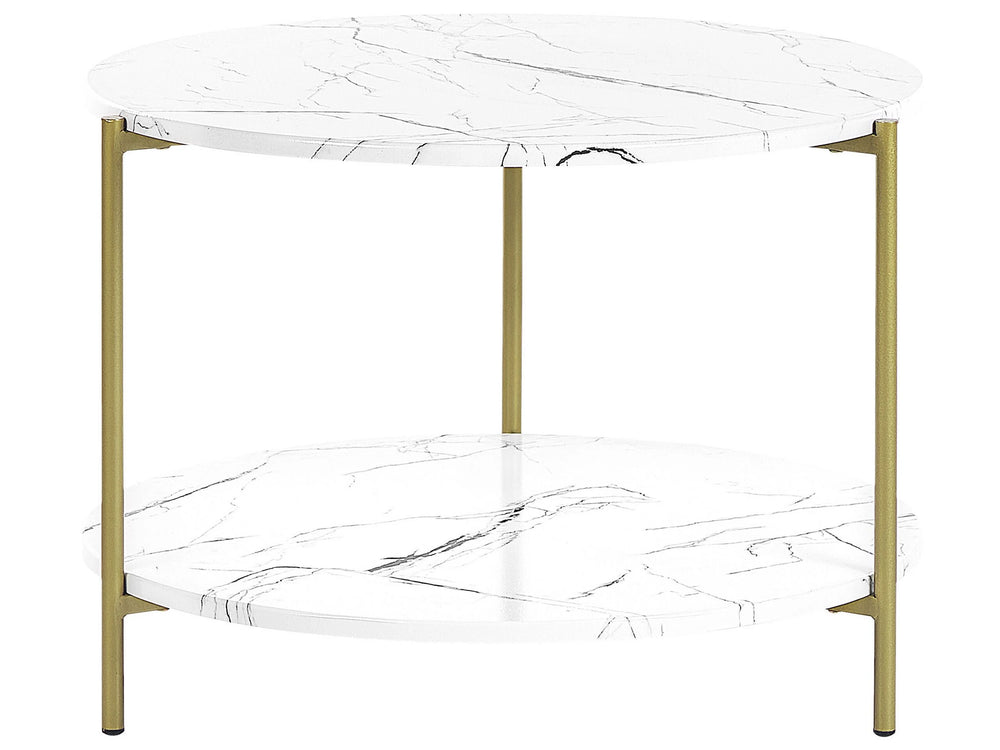 Coffee Table White with Gold MDF Iron 60 cm with Shelf Metal Legs Modern Glam Living Room Beliani