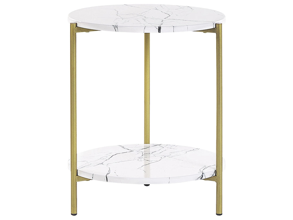 Side Table White with Gold MDF Iron 40 cm with Shelf Metal Legs Modern Glam Living Room Beliani