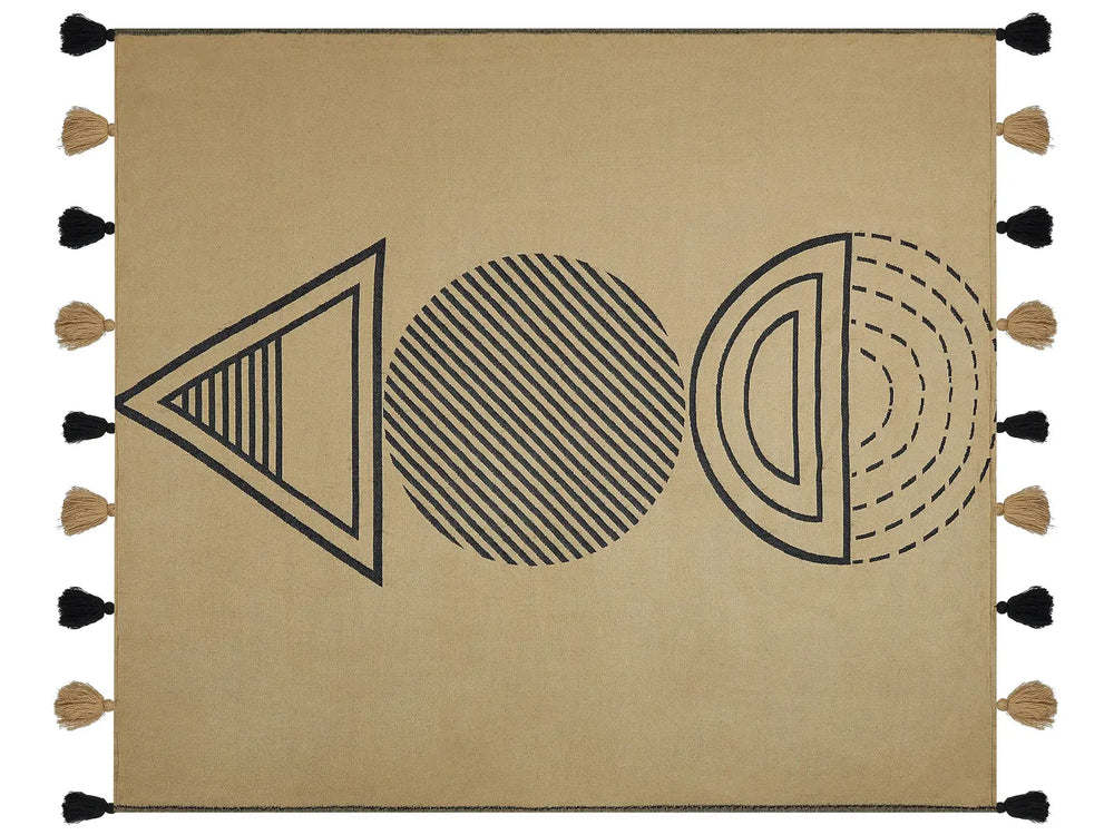Blanket Beige and Black Acrylic and Polyester 130 x 170 cm Bed Throw Abstract Pattern Fringes Bedroom Living Room Beliani is backordered and will ship as soon as it is back in stock.