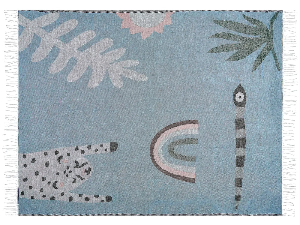 Blanket Blue Polyester and Acrylic Blend 130 x 170 cm Decorative Throw Animal Reverse Pattern Beliani