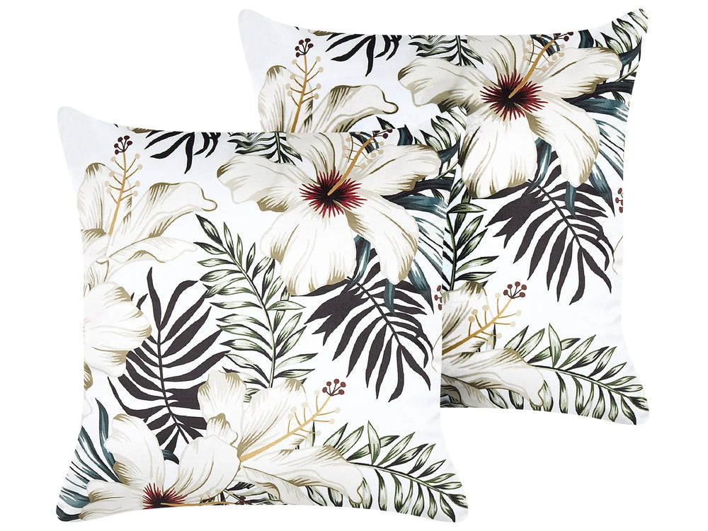 Set of 2 Decorative Cushions White and Green Velvet 45 x 45 cm Leaf Pattern Boho Decor Accessories Beliani