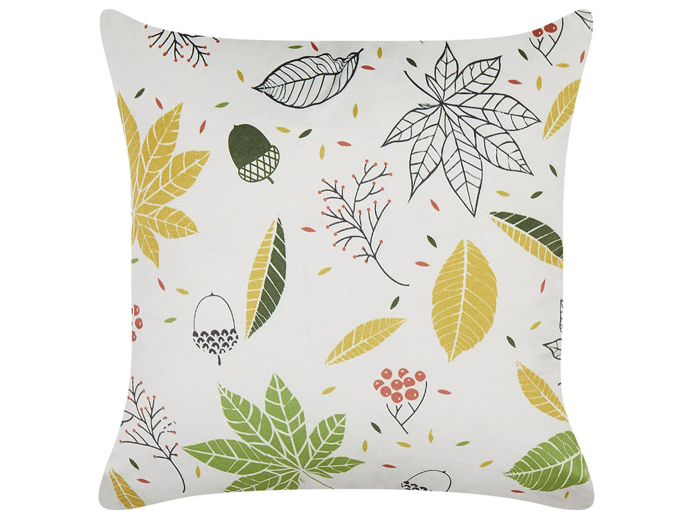 Decorative Cushion Off-White Velvet 45 x 45 cm Leaf Pattern Boho Decor Accessories Beliani
