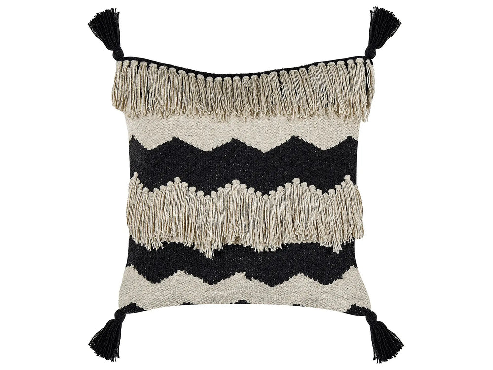 Decorative Cushion Beige and Black Cotton 45 x 45 cm With Tassels Boho Geometric Pattern Handmade Accent Piece Beliani is backordered and will ship as soon as it is back in stock.