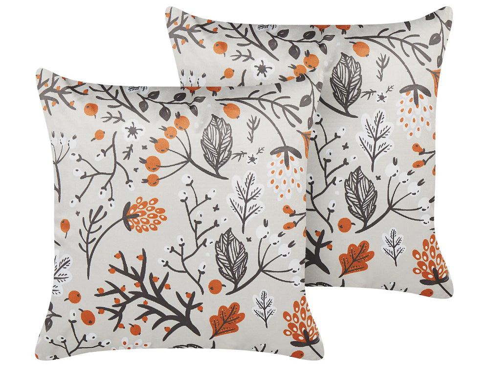Set of 2 Scatter Cushions Multicolour Polyester Velvet 45 x 45 cm Autumn Motif Removable Cover with Filling Boho Style Beliani is backordered and will ship as soon as it is back in stock.