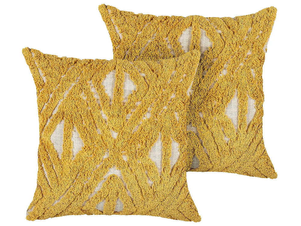 Scatter Cushions Yellow Cotton Slub 45 x 45 cm Geometric Pattern Tufted Embroidered Removable Covers with Filling Boho Style Beliani is backordered and will ship as soon as it is back in stock.