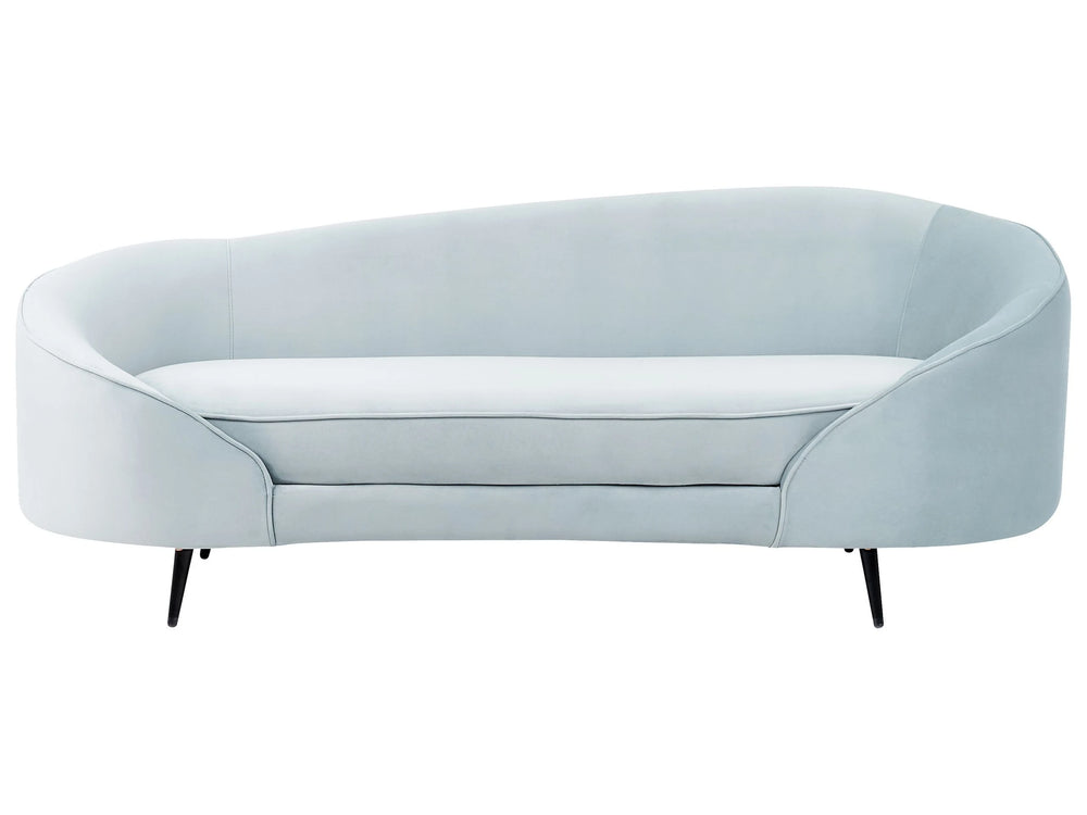 Sofa Light Blue Velvet Glamour Curved Retro Styled 3 Seater with Black Metallic Legs Beliani is backordered and will ship as soon as it is back in stock.