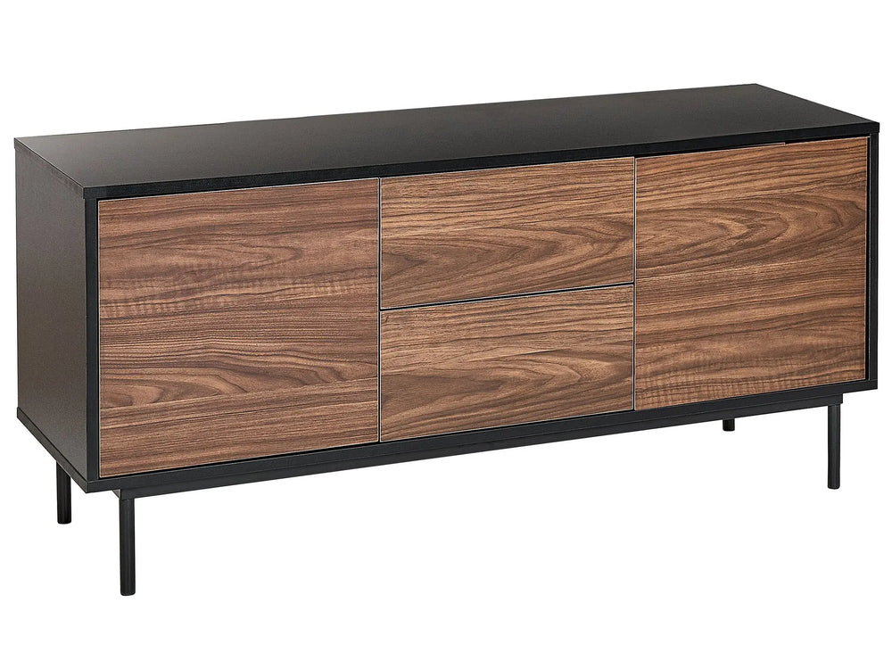 2 Door Sideboard Dark Wood with Black Particle Board Steel Legs Drawers Cabinets with Shelves Modern Style Hallway Living Room Bedroom Storage Beliani