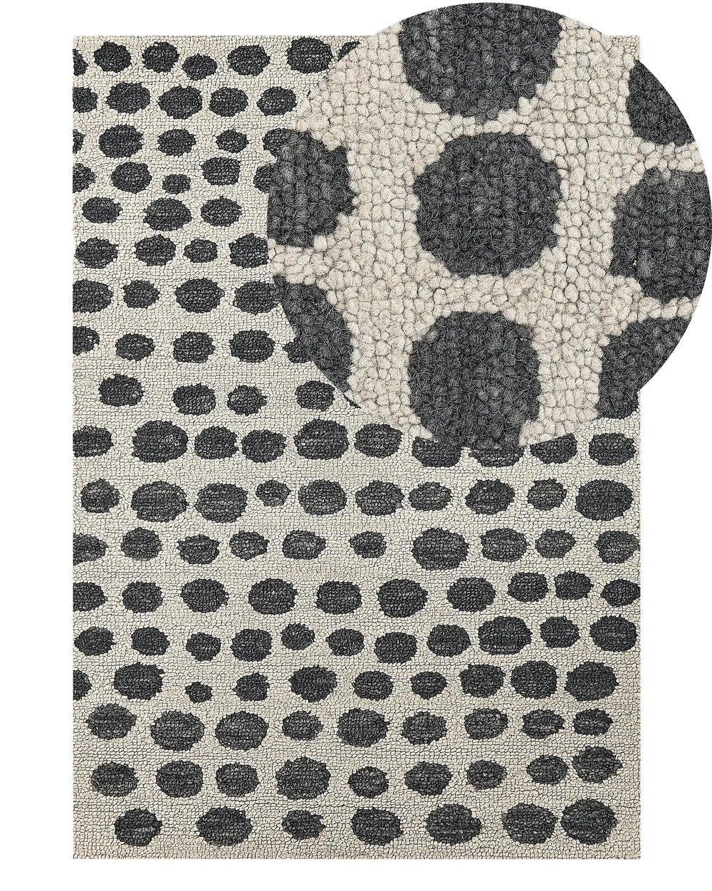 Area Rug Beige and Black Wool 140 x 200 cm Hand Tufted Spotted Pattern Boho Living Room Bedroom Beliani