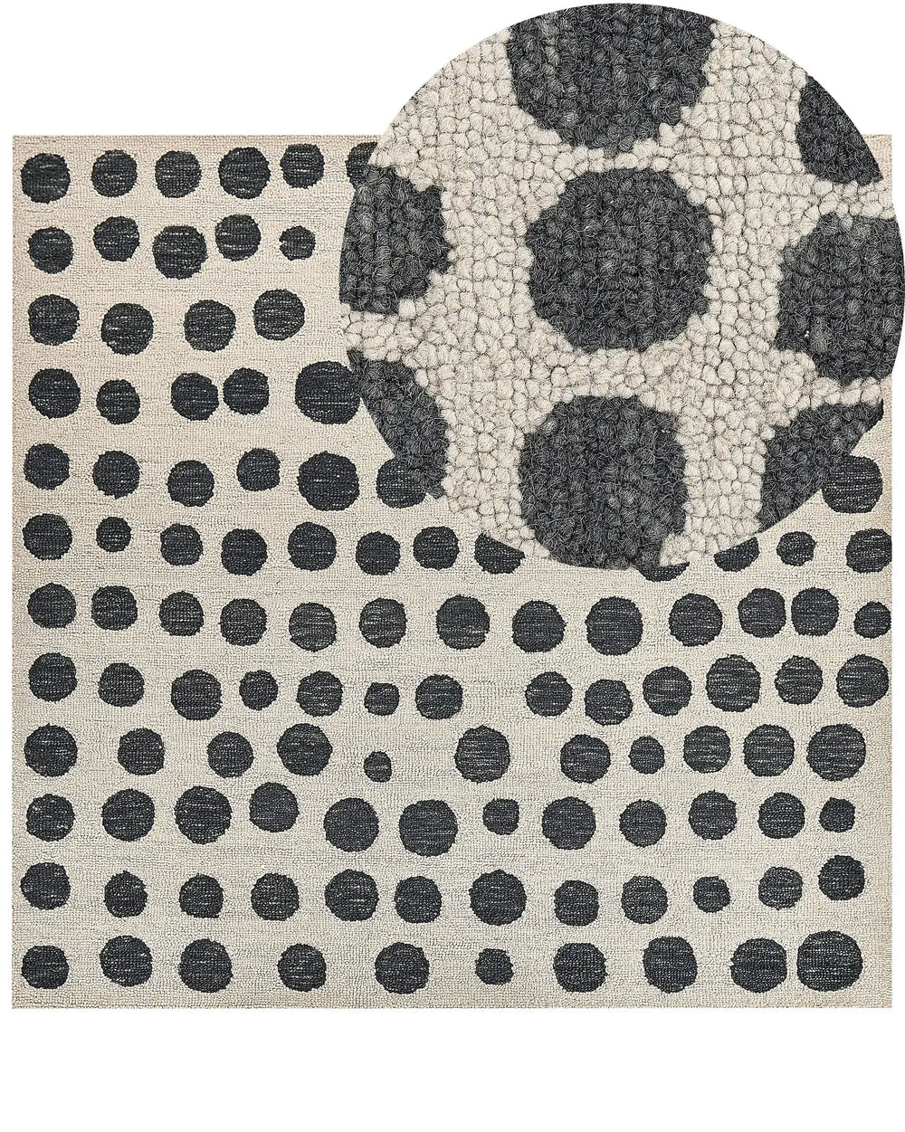 Area Rug Beige and Black Wool 200 x 200 cm Hand Tufted Spotted Pattern Boho Living Room Bedroom Beliani