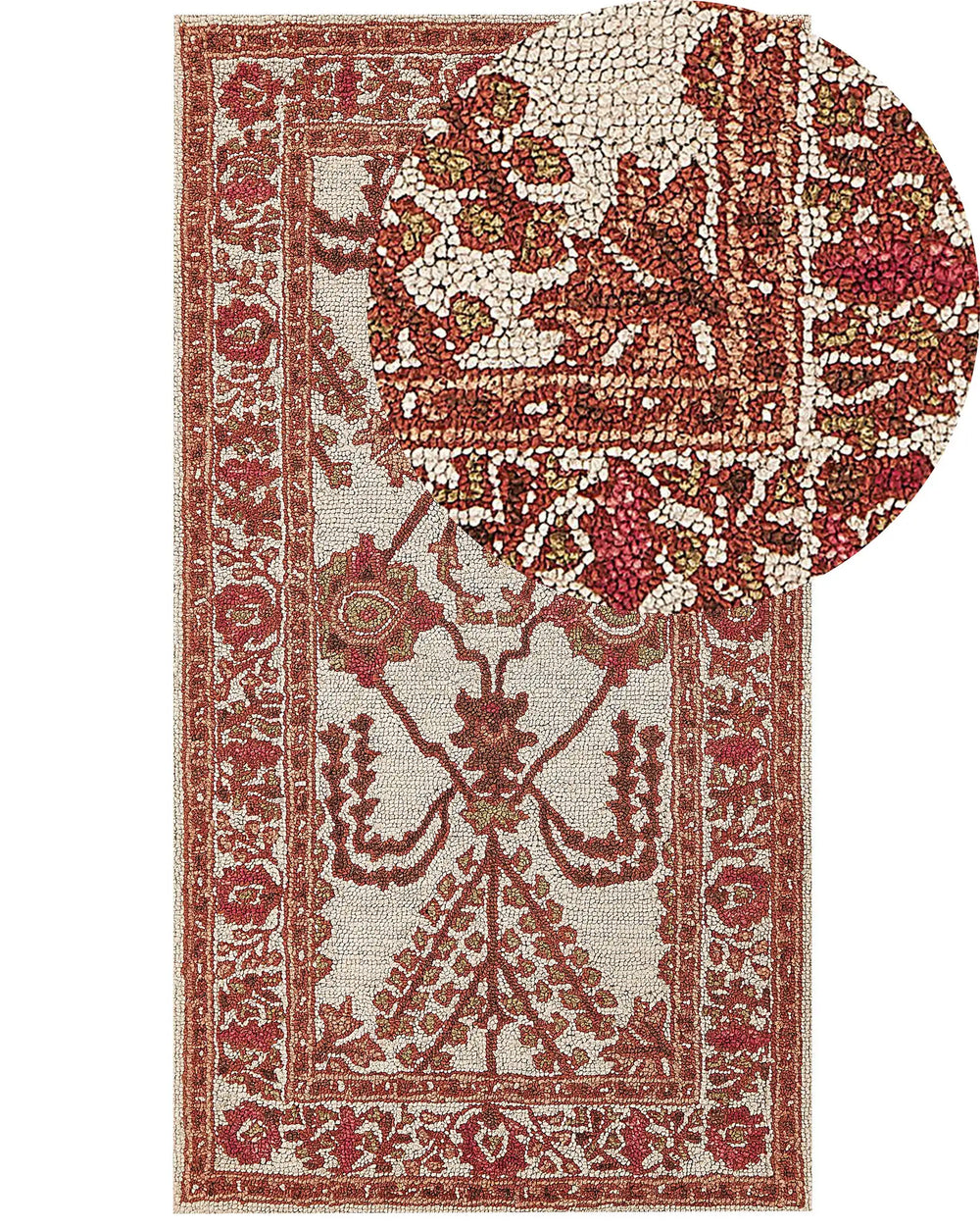 Area Rug Orange and Beig Wool 80 x 150 cm Hand Tufted Oriental Pattern Boho Living Room Bedroom Beliani