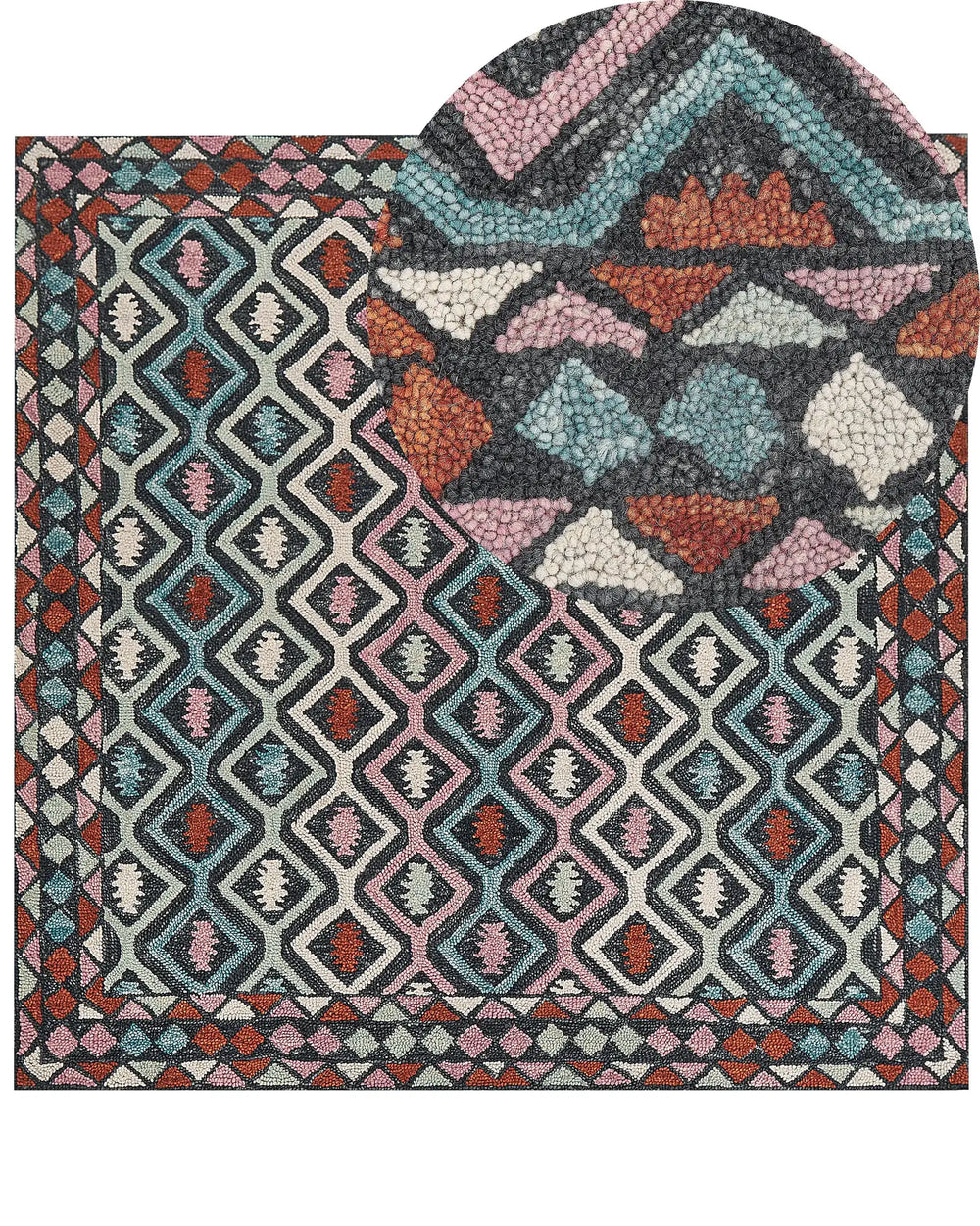 Area Rug Mulitcolour Wool 200 x 200 cm Flat Weave Hand Tufted Geometric Oriental Pattern Beliani