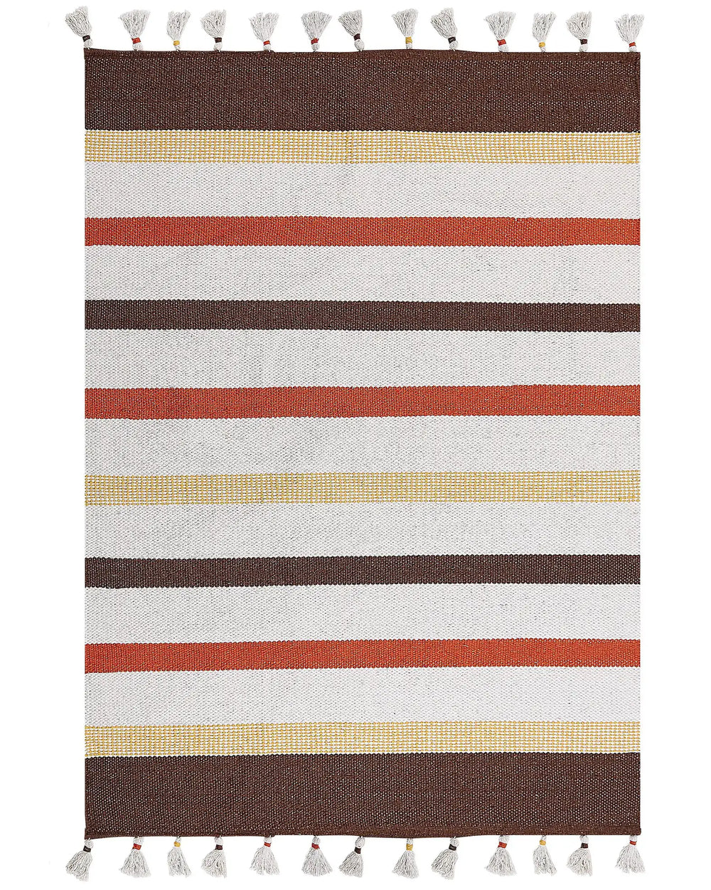 Area Rag Rug Brown and Beige Stripes Cotton 160 x 230 cm Rectangular Hand Woven Beliani