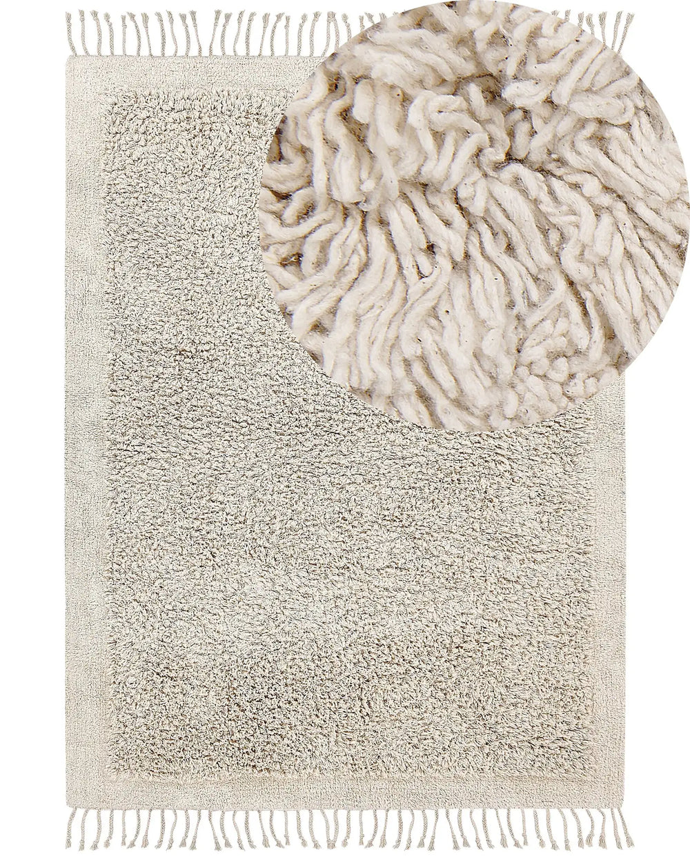 Area Rug Light Beige Cotton 140 x 200 cm Shaggy Rectangular with Tassels Boho Style Beliani