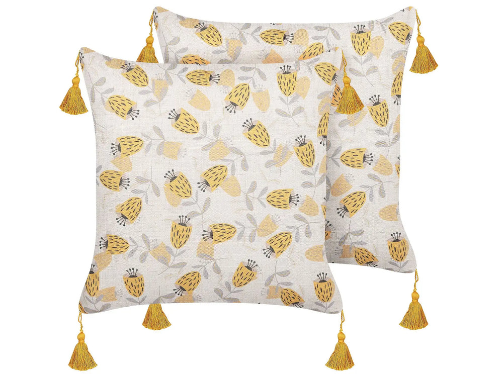 Set of 2 Decorative Cushions Yellow and Beige Floral Pattern 45 x 45 cm Flower Motif Retro Decor Accessories Beliani