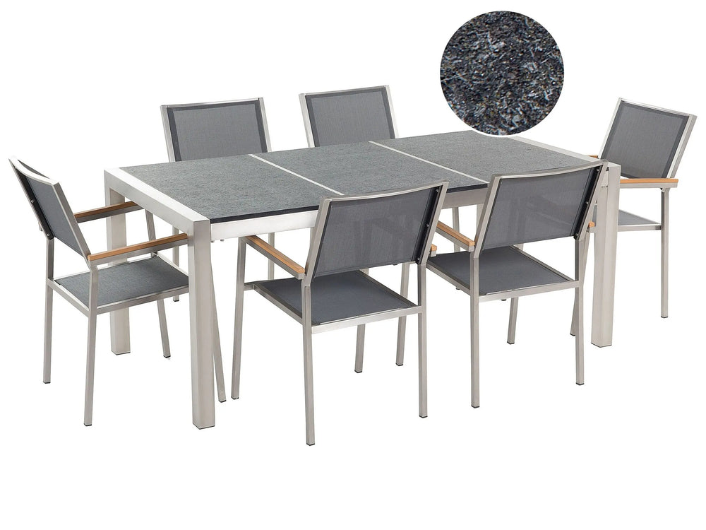 Garden Dining Set Grey with Flamed Basalt Table Top 6 Seats 180 x 90 cm Triple Plate Beliani