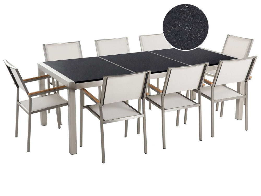 Garden Dining Set White with Black Granite Table Top 8 Seats 220 x 100 cm Triple Plate Beliani