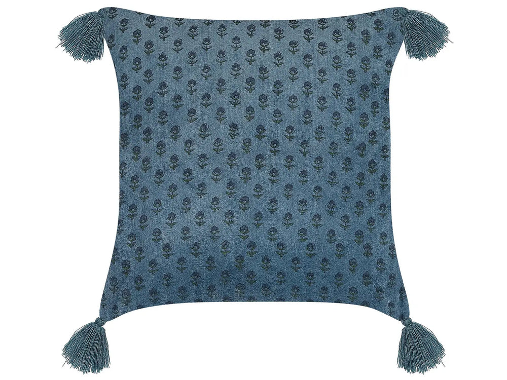 Decorative Cushion Dark Blue Velvet and Cotton 45 x 45 cm Floral Motif Block Printed Boho Decor Accessories Beliani is backordered and will ship as soon as it is back in stock.