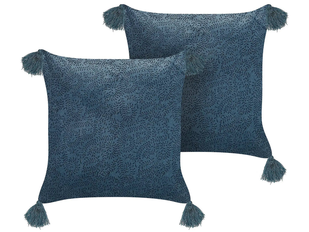 Set of 2 Decorative Cushions Dark Blue Velvet and Cotton 45 x 45 cm Floral Pattern Block Printed Boho Decor Accessories Beliani is backordered and will ship as soon as it is back in stock.