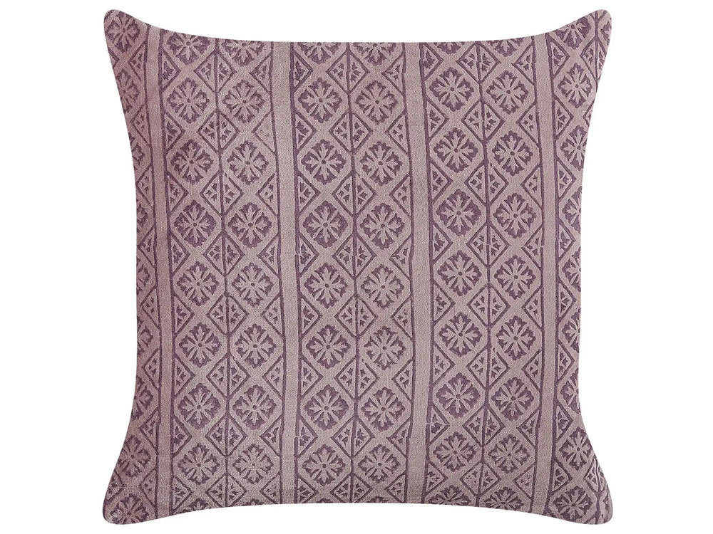 Decorative Cushion Pink Velvet and Cotton 45 x 45 cm Geometric Pattern Block Printed Boho Decor Accessories Beliani