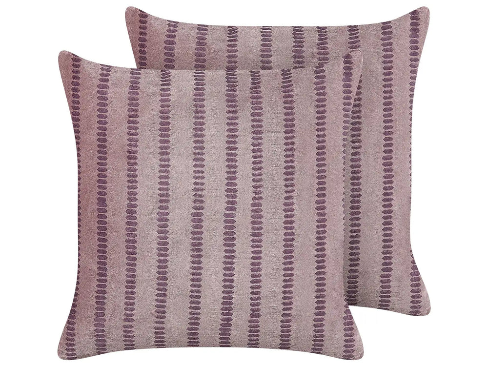 Set of 2 Decorative Cushions Pink Velvet and Cotton 45 x 45 cm Striped Block Printed Boho Decor Accessories Beliani
