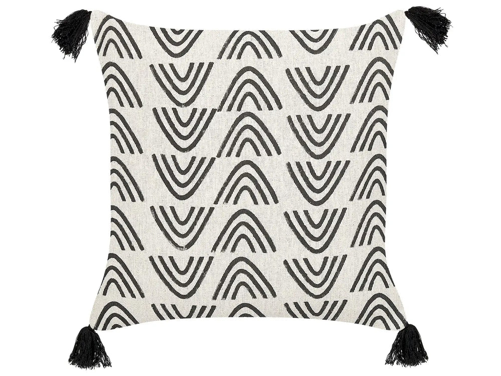 Decorative Cushion White and Black Cotton 45 x 45 cm Geometric Pattern Foil Print Boho Decor Accessories Beliani