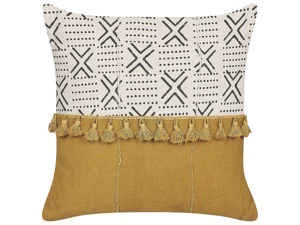 Decorative Cushion Cotton Cream White and Yellow 45 x 45 cm Boho Print Geometric Pattern Decoration Accessories Beliani is backordered and will ship as soon as it is back in stock.
