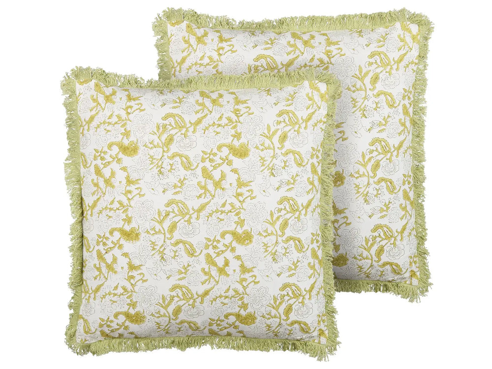 Set of 2 Cotton Cushions Green and White 45 x 45 cm Hand Block Print Removable Covers Zipper Country Traditional Style Beliani is backordered and will ship as soon as it is back in stock.
